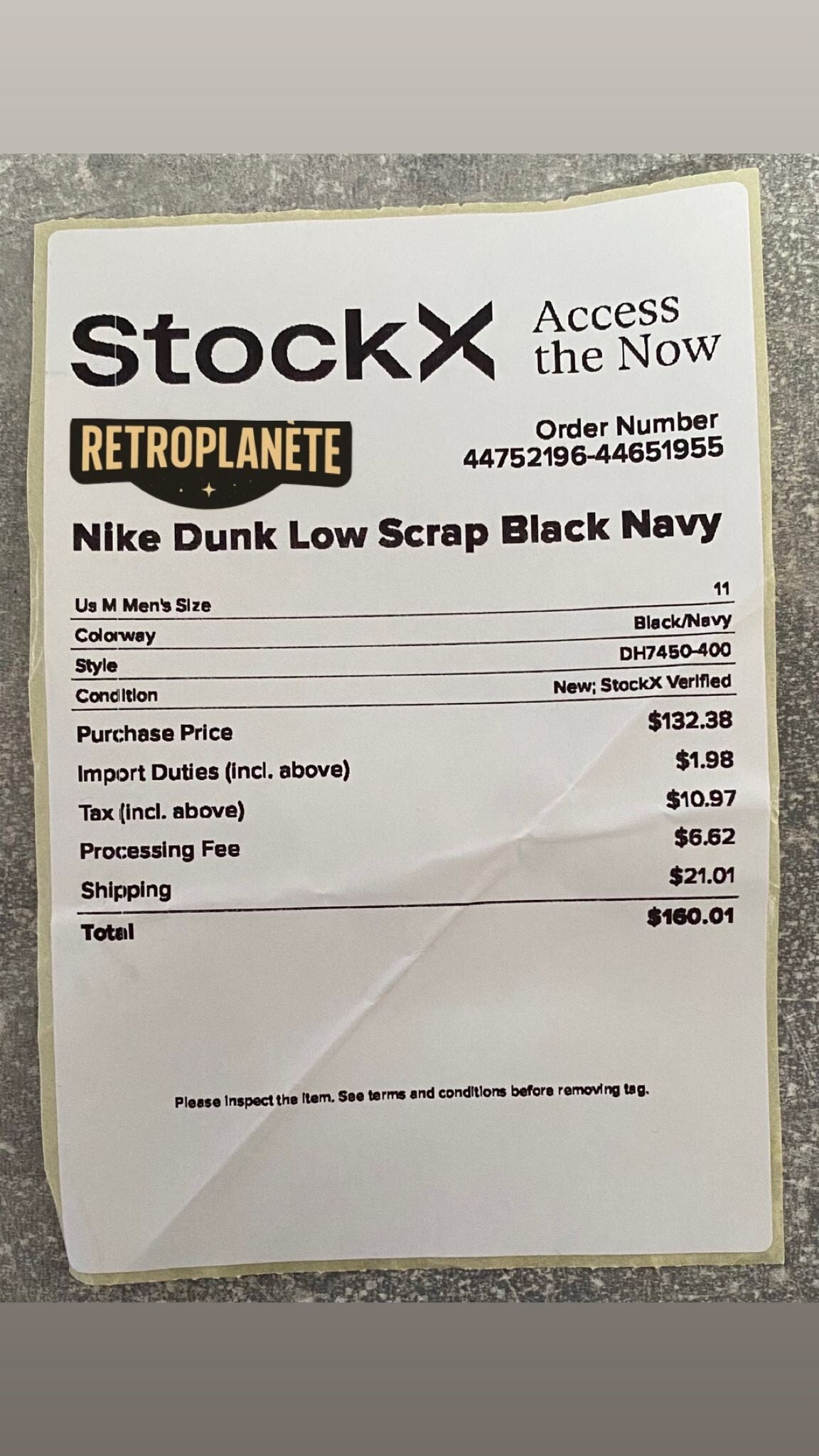 Acheté chez Stock X